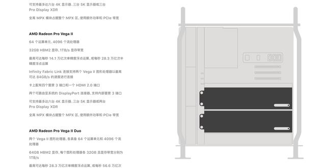 - 两个 Radeon Pro Vega II Duo 图形处理器,各配备 2x32GB HBM2 显存
