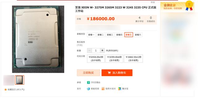 - 处理器型号是Intel Xeon W 3223,我在亚马逊找到一个卖家售价885美元,折合人民币6195元