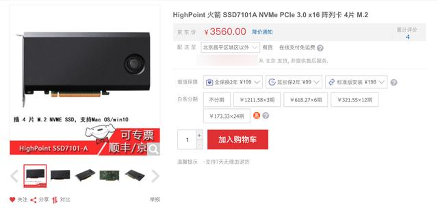 不过我们有其他办法解决,就是这张 HighPoint NVMe PCIe 3.0 x16 阵列卡,支持4张M.2固态硬盘