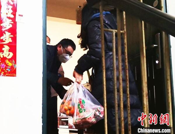 钟震宇隔离期间,社区工作人员来看望他。游仙区委宣传部提供