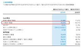 微盟是成立于2013年的智能商业服务商,2019年1月港股上市。集团有两大业务:SaaS产品和精准营销。商户使用其SaaS产品在社交媒体平台上开设个性化店面并管理主要数字商务营运,包括产品展示、订单获取及支付流程、客户关系管理及社交媒体运营。微盟集团财报运营数据显示,截至2019年6月30日,其SaaS付费用户数为7万户。