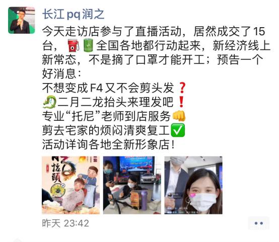 目前唯一可以看到的,是比亚迪销售公司总经理赵长江早前发的一个朋友圈——他表示在自己参与的一场比亚迪专卖店线上直播中,竟然卖了15台车。