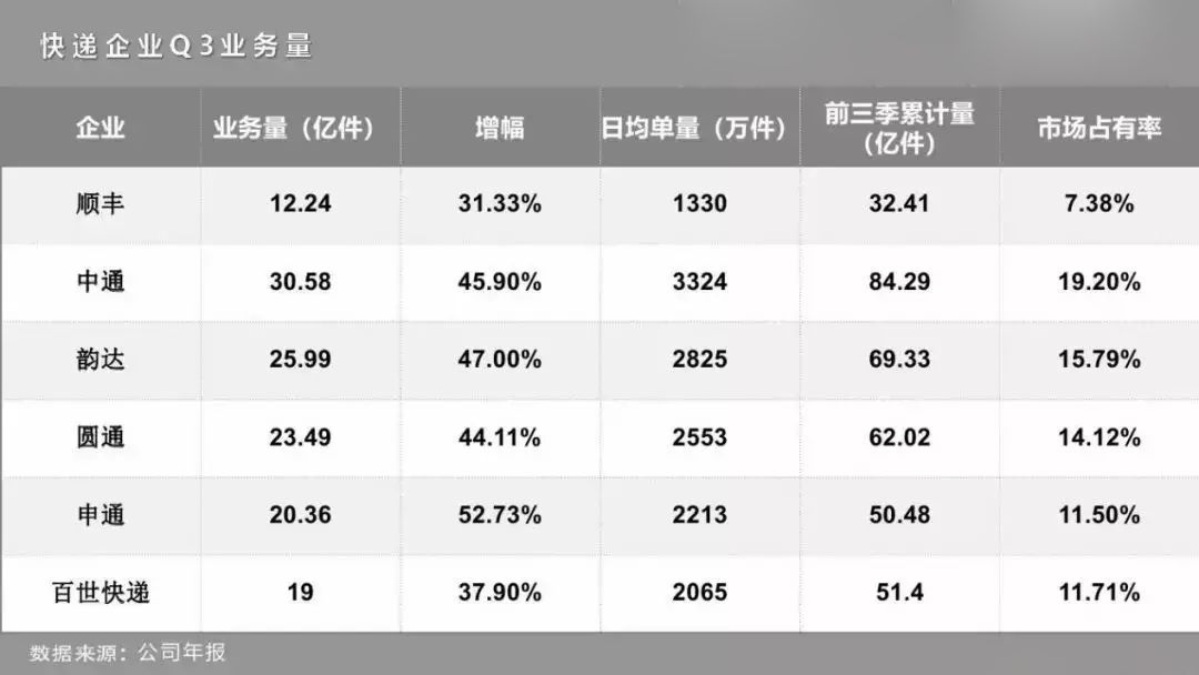 顺丰快递目前日均已突破2000万票,空运业务突破1200万票,均超过Q3的日均单量。