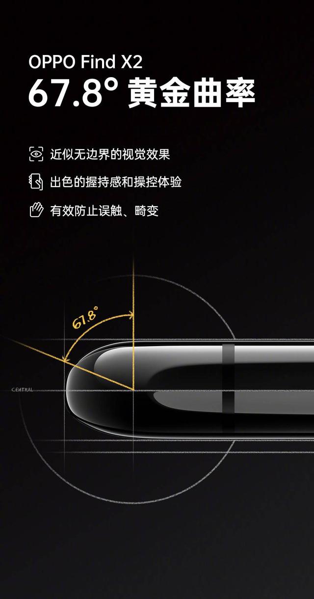 截止到目前为止,OPPO官方已经揭露了Find X2的不少亮点,而其中最大的亮点之一就是那块超感曲面屏。据官方表示,经过细致打磨后,Find X2的曲面屏达到了67.8°的黄金曲率,可以同时兼顾“无边框”的一体观感以及日常实用性,综合体验将更为出色。