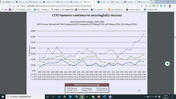 由于近两年的经济一直比较动荡(从2018年初的中美贸易战开始),CEO离职数是处于“稳定”的上升趋势的。