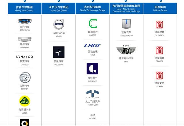 根据吉利控股业务板划分,目前吉利控股集团由吉利汽车集团、沃尔沃汽车集团、吉利科技集团、吉利新能源商用车集团和铭泰集团等五大核心子集团组成。