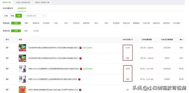 然后我们看到的抖音电商带货销量数据是这样的,排行首位的关联视频都是几千个。