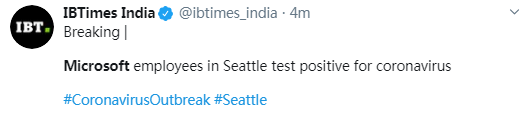 海外网3月6日电 《国际财经时报》援引《纽约时报》6日报道,微软公司西雅图工作区的两名员工确诊感染新冠肺炎。