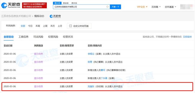 站长之家(ChinaZ.com) 3月6日 消息:今日,江苏京东信息技术有限公司发生工商变更,刘强东卸任该公司总经理一职,其助理张雱卸任该公司执行董事、法定代表人。