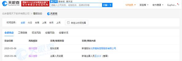 天眼查数据显示,近日,北京春雨天下软件有限公司发生工商变更,新增股东为搜狗的运营主体北京搜狗信息服务有限公司,与此同时,新增搜狗CEO王小川为公司董事。