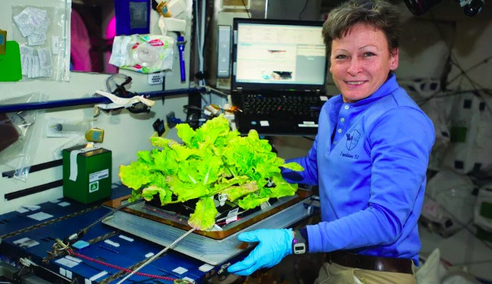 据悉,NASA的第一个蔬菜生产系统生长箱于2014年抵达空间站。蔬菜生产系统由植物枕头(包含陶瓷土壤的密封单元)、LED照明和通过管道注水组成。2015年,在国际空间站工作的日本宇航员油井龟美也等人试吃了人工栽培的“太空莴苣”,随后剩下的蔬菜样本被送回地球进行研究,宇航员们随后继续在空间站种植莴苣。