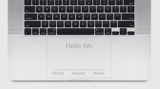专利申请的一部分描述了看起来像是现有的触摸栏,仅专注于显示自动校正或类似自动完成的文本。苹果将其称为“在下部按键组上方的辅助显示屏”。在整个专利申请中,苹果将类似MacBookPro的设备分解为带有主显示屏的上部,而下部则通过键盘和触控板或空格键中的“辅助显示屏”将其分解为下部。