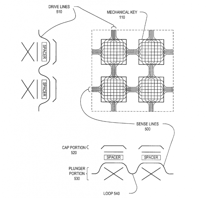 苹果专利文件中首先历数目前通行的键盘的种种弊端。文件中称:“人们一直在尝试寻找键盘的替代品,包括非QWERTY布局、凹凸表面、电容按键、分割设计、薄膜按键等等。然而,要为用户所接受,键盘的替代品必须在可用性或人体工学方面存在显著改善。而目前为止的各类尝试都无法取代传统机械键盘的地位。”