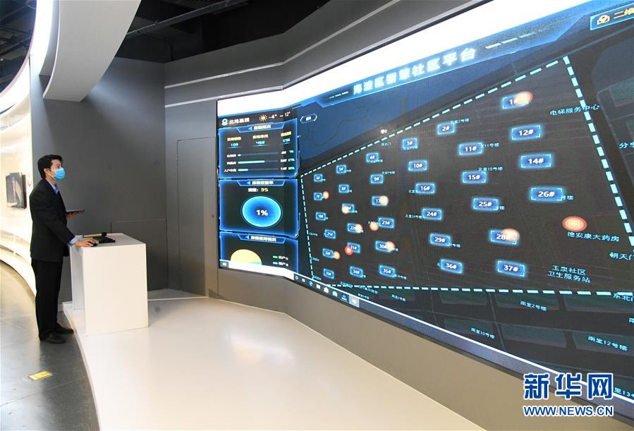 3月10日,在海淀(中关村科学城)城市大脑展示体验中心,工作人员展示海淀区智慧社区平台。新华社记者 任超 摄