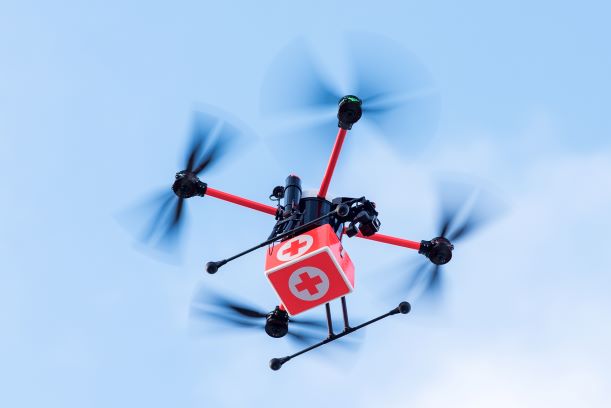 当地时间2020年2月5日,德国汉堡,Globe UAV 推出的一款无人机在 Bundeswehr 医院进行测试飞行,将成为快速运输医疗物资的样本。