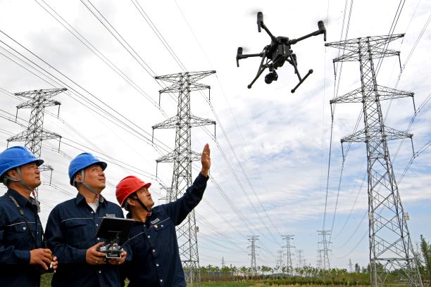 2019年5月29日,国家电网安徽亳州供电公司输电室技术人员正在涡阳县220千伏伯谯线进行无人机保电巡检。入夏以来,国网安徽亳州供电公司积极启用无人机巡线机制,检修维护供电线路,及时排查各类隐患,确保辖区安全用电。