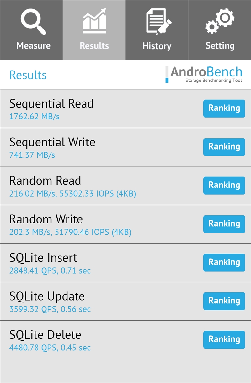 AndroBech是一款手机内存性能测试软件,其能够测试手机的连续读写、随机读写、数据库性能,对于手机闪存的类型和性能强弱,有很大的参考意义。