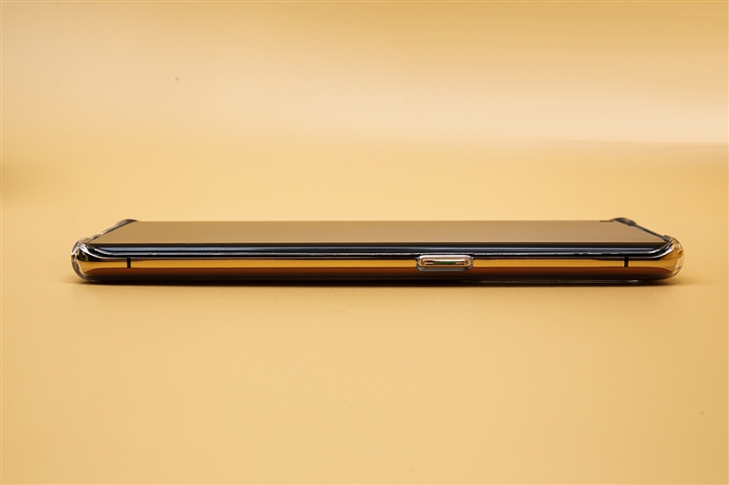 赠送的透明保护套设计也相当不错,并不是简单的空位对齐,边角全包就够了,同样有着设计上的细节。上下两端突出屏幕起到保护作用,两侧略微低于屏幕,使用时丝毫不影响手感,规避了曲面屏手机带壳时手感的损失。