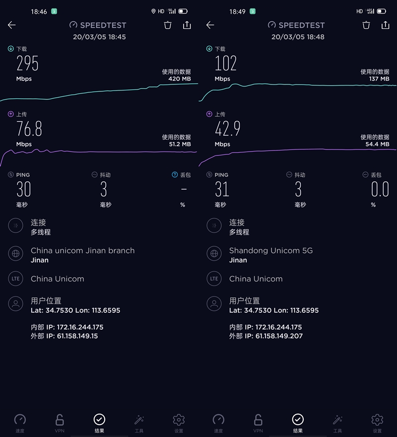 最后,顺便聊下5G,即使是4G套餐,使用5G手机也能享受到5G网络的速度加成。本次笔者在市中心繁华地带测试,非常容易就达到了4G套餐下接近上限的速度285Mbps,此次,4G网络下的速度也非常惊人,高达102Mbps,不过这已经是4G网络下的极限。即便不更换套餐,此时一部5G手机依然能带来至少3倍的提升,足以作为换机的一大理由。
