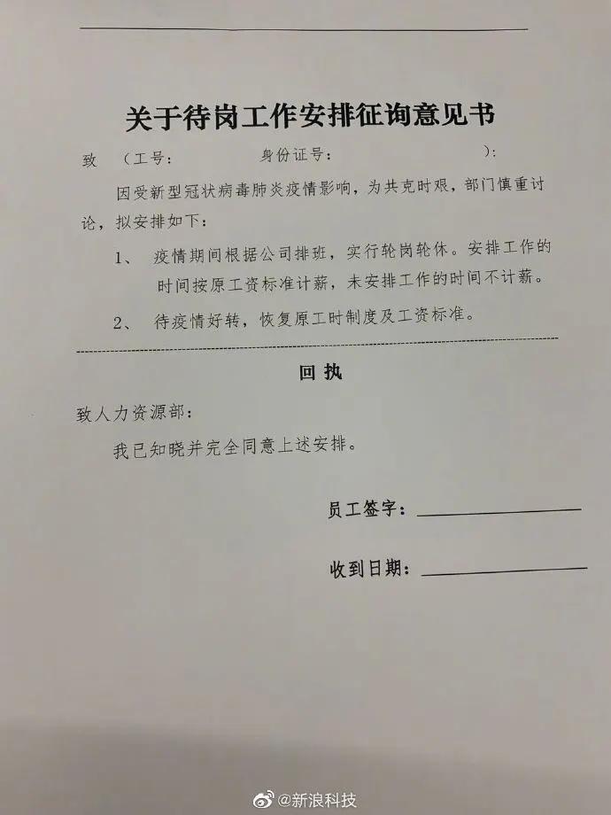 划重点:业务量减少严重的部门会与员工协商采用轮岗轮休工作模式,随着形势向好会恢复到正常状态。