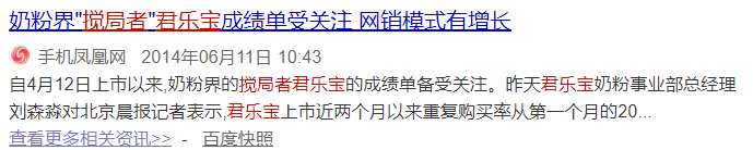 130元的奶粉,在当时没有一家零售店肯卖,君乐宝被迫转战线上。结果,在2014年双11,君乐宝奶粉卖了2800万,在奶粉行业排名第一,国产奶粉第一次超越了洋奶粉!