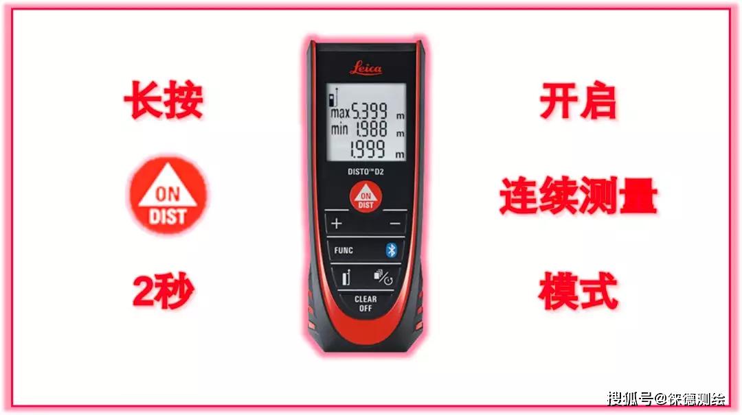 连续测量是徕卡DISTO隐藏的一个功能,测量时只需长按测量键,仪器就开启此功能,高频持续测量,并且显示连续测量期间测量值中的最大值、最小值和最新一次测量的值。
