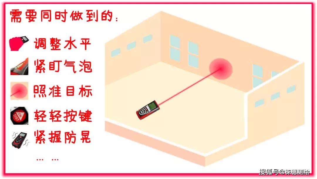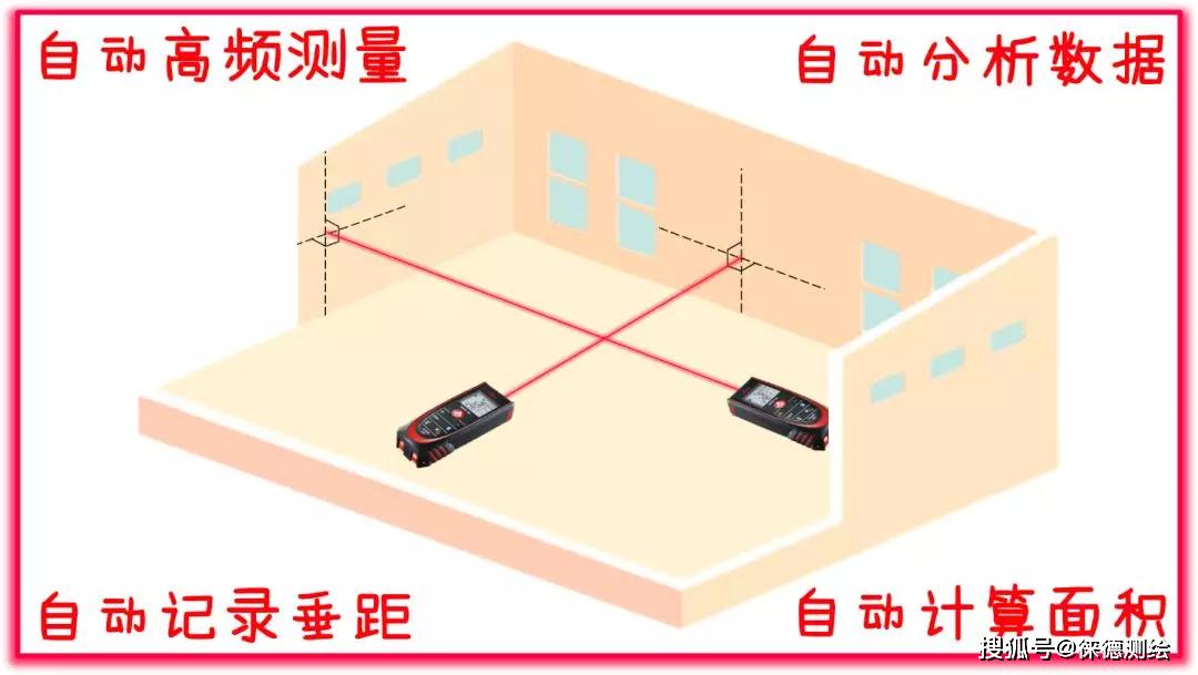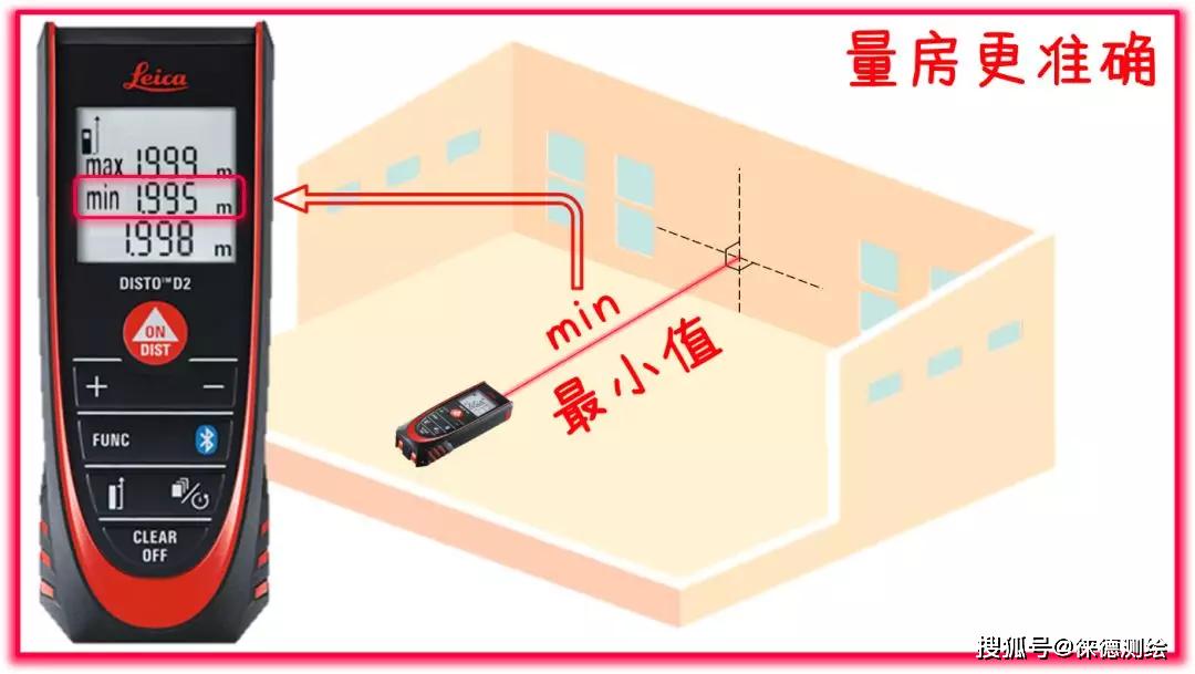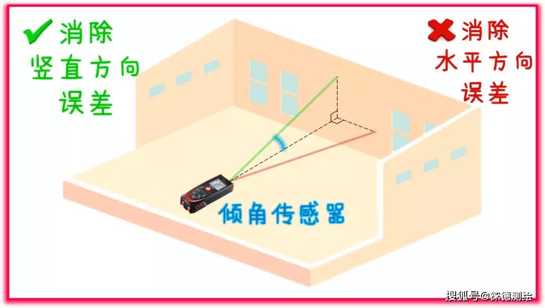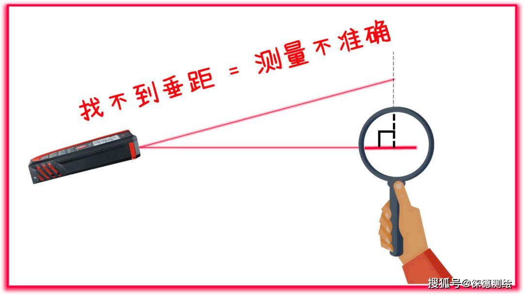 例如测量房屋的长度,也就是与对面墙壁的最小距离(垂距),由于操作时测量人员不可能将做到垂直照准对面墙壁,所以测出的数据都会大于垂距,这个人为的误差会远大于仪器测距精度,从而影响测量准确度,影响装修设计、板材加工等工作。