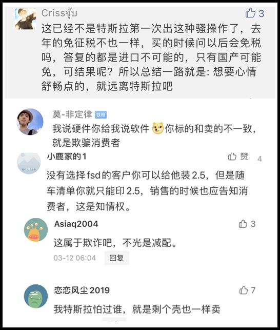 还有网友表示,对特斯拉的不诚信,和马斯克的傲慢态度很失望,不会再考虑购买其任何产品。