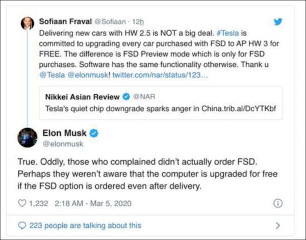 对待中国车主的义愤填膺,马斯克表示很不能理解,没买FSD功能,事儿还那么多!而且后续想要,也能免费换回HW3.0,在马斯克看来,这些车主就是想搞个大新闻!