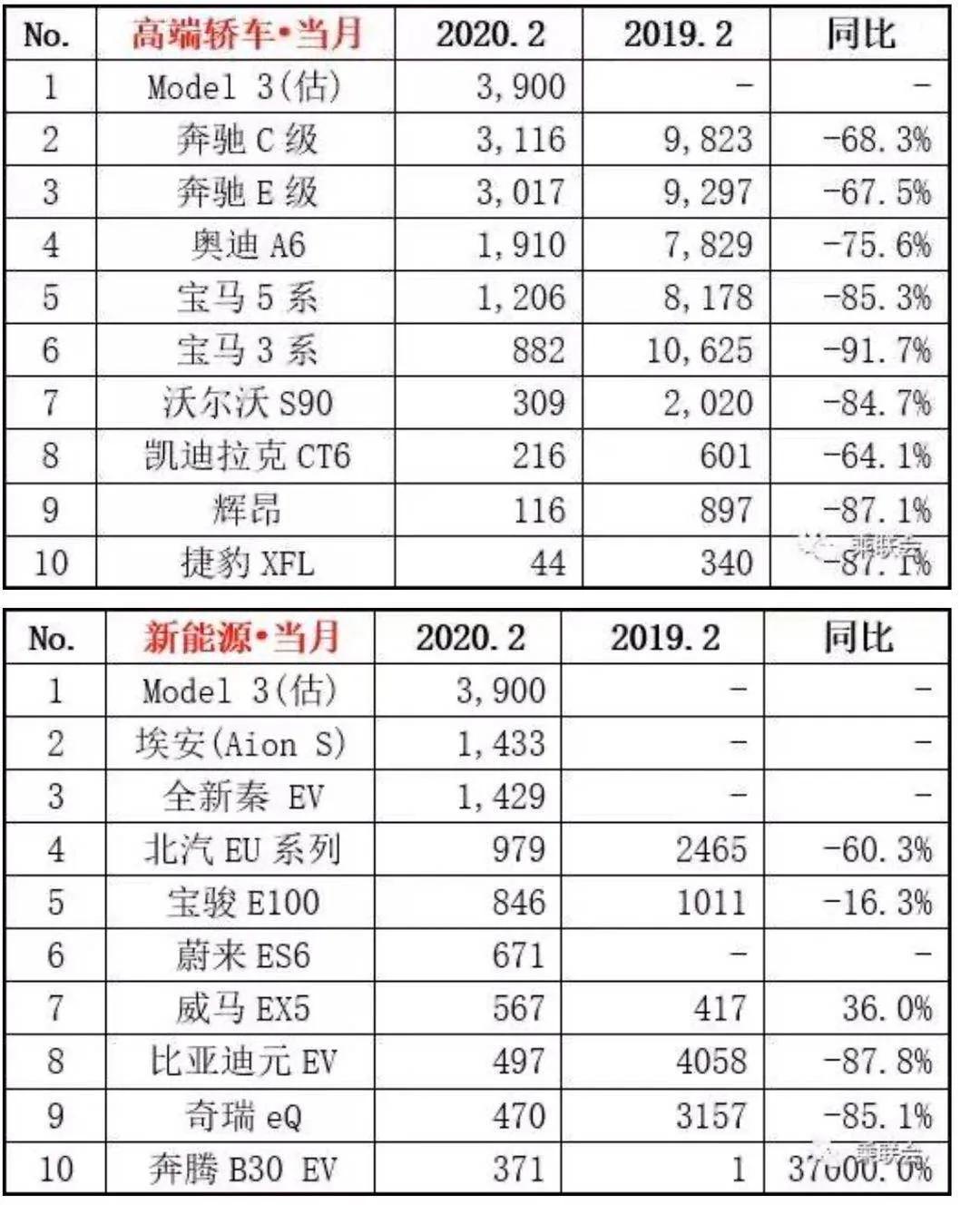 连续两月,国产Model 3的销量都遥遥领先竞争对手。以二月份为例,售出3900辆的Model 3不但占领了新势力造车的销量冠军,还超越奔驰C级、奥迪A6等一众老熟人,占据了高端轿车的销量冠军。