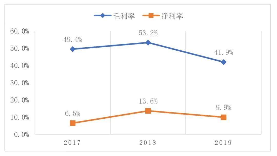 由于毛利及净利下滑速度超过营收,36氪2019年的毛利率及净利率有所下滑。根据财报,2017年至2019年,36氪的毛利率分别为49.4%、53.2%和41.9%,净利率分别为6.5%、13.6%和9.9%。从近3年毛利率和净利率变化可以看出,2018年36氪业绩达到了顶峰。未来,毛利率与净利率是否能否止跌值得外界关注。
