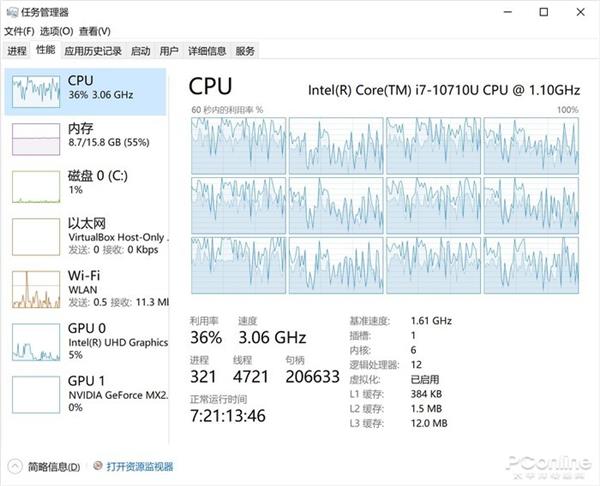 CPU不仅区分了线程,还区分了核心,比Win10任务管理器强