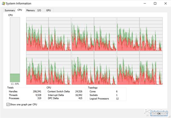 我们再来看看硬件的相关页面。Process Explorer可以显示比Win10任务管理器更加详细的硬件信息。