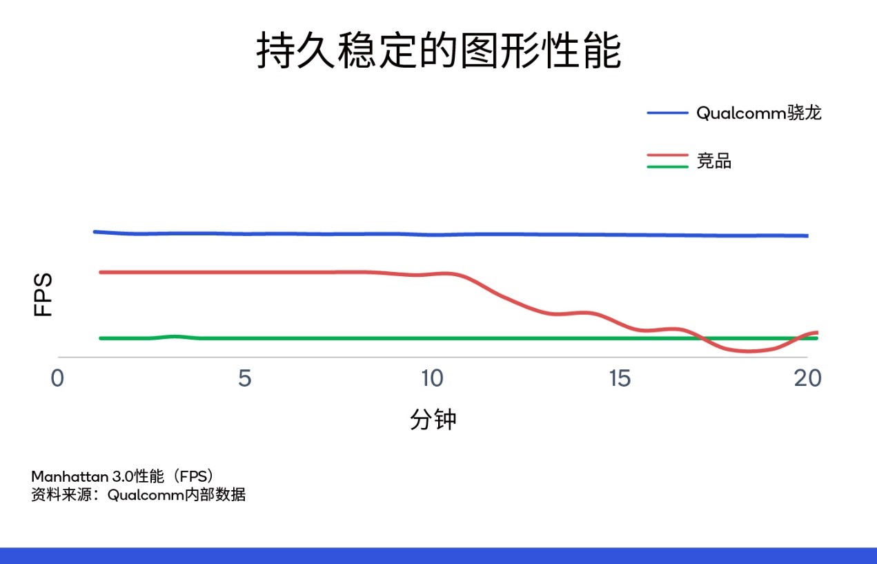 高通 Adreno 650 GPU能够为Android平台提供最佳的持久稳定的图形性能。骁龙865集成的GPU支持丰富流畅的图形图像,同时还能满足长时间游戏或使用的要求。竞品GPU随着使用时间的增加会出现性能下降的情况。