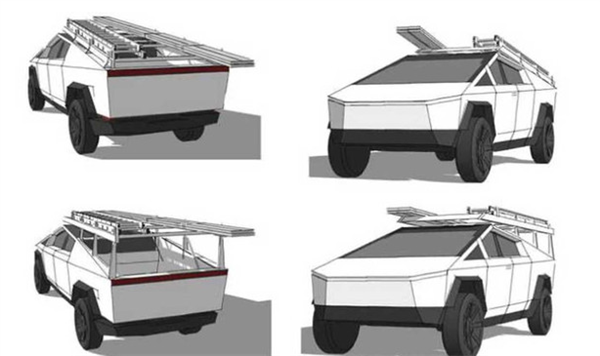 其实早在Cybertruck发布之初,当特斯拉CEO马斯克夸夸其谈介绍Cybertruck设计时,实时演示背景屏幕上就出现了这种梯架的设计图。