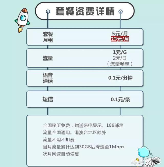 月租5元一个月,1元1G,2元每日封顶,当然重点是30GB之后会进行限速,这对于使用的宽带的用户还是比较有优惠的。