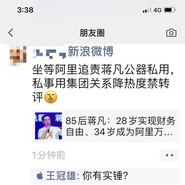 那么问题来了,这个狗血八卦,是否会影响蒋凡“阿里太子”的接班人地位?中国传统文化自古强调“德才兼备”,不喜欢“德不配位”,京东刘强东绯闻案之后声誉一落千丈甚至牵连到京东就是例子啊。何况掌门人马云一贯极度重视价值观,阿里集团的考核价值观占一半,很担心今年蒋凡的绩效考核能否到3.5……