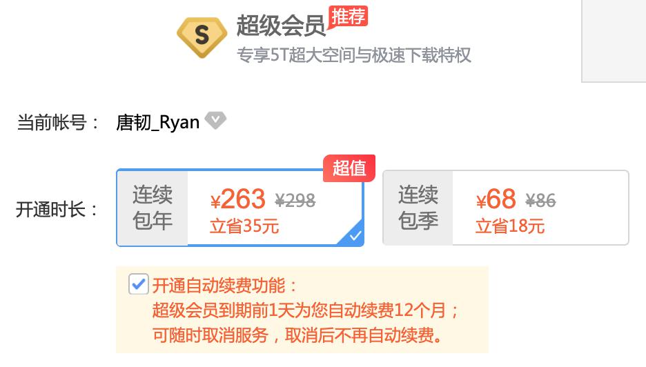超级会员(SVIP)的定价是 263 一年(连续包年价)。