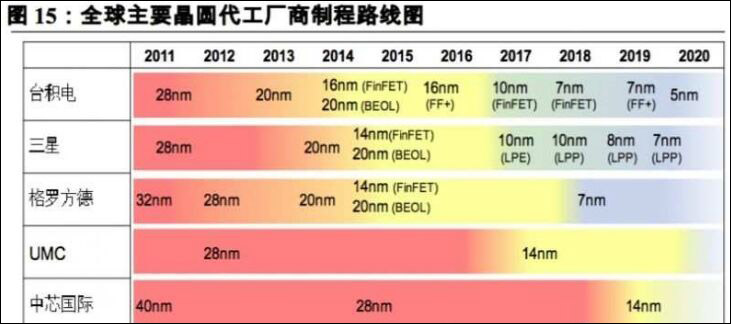 台积电5nm工艺目前已量产出货,第二季度将扩大生产;三星预计今年6月底左右完成5nm产线建设,量产时间要等到今年底或明年初。