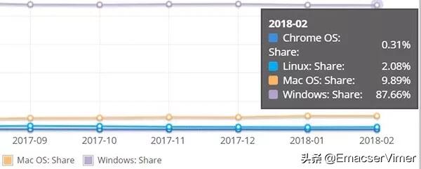 除了在特定的行业不可取代之外,Windows也是目前办公领域的绝对统治者,在PC的市场份额中,Windows依然超过了80%,是桌面操作系统的绝对王者。