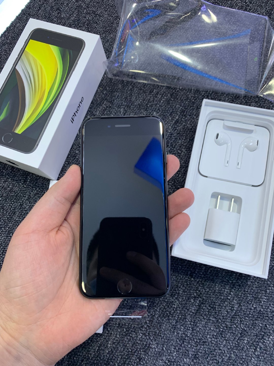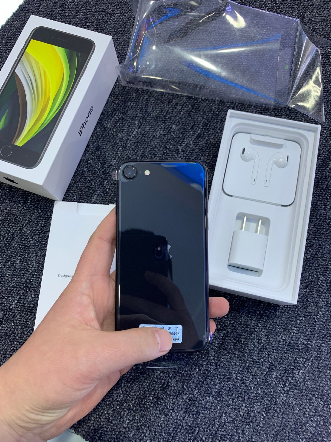 这一次的新iPhoneSE依旧没有随机附带手机壳,不过整机前后都提供了出厂的贴膜: