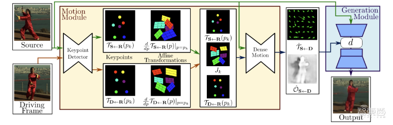 该模型分为运动估计模块和图像生成模块两个主要组成部分。