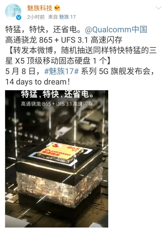 4月24日上午10点整,魅族官微正式发文道:特猛,特快,还省电。高通骁龙 865 + UFS 3.1 高速闪存。很显然,这是开始官宣魅族17的核心性能配置了,在处理器方面,用的是高通目前最顶级的骁龙865,在闪存方面,用的也是目前最高速的UFS3.1,这些,应该算是黄章的常规操作了,毕竟,它已经到顶了,不可能再继续网上走了,真机实际体验,就看到时候魅族的调教和优化了。当然,在性能“铁三角”里面,魅族官微居然没有说运存情况,很显然,和一加8系列和RedmiK30Pro一样,魅族17标准版可能会是LPDDR4X,而高配版则应该是LPDDR5。