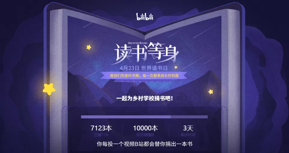B站则与美丽中国,新华传媒、京东、言几又等品牌合作发起了#读书等身#直播活动,并以用户发布活动稿件,平台就捐赠图书为由,鼓励用户上传视频,还邀请诸多高校、名人、知识型UP主与用户创作书单。