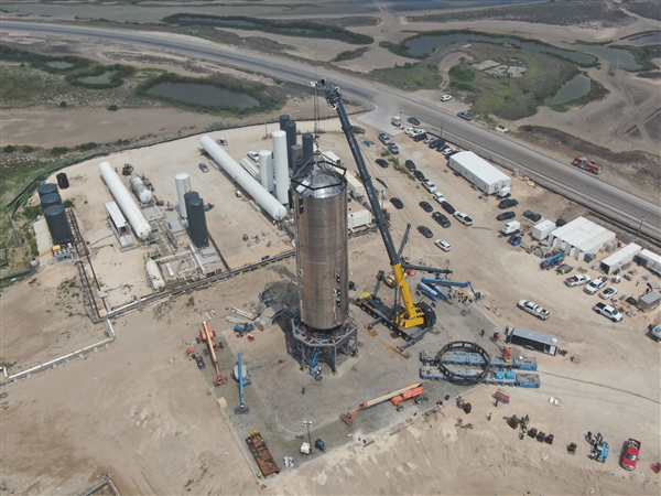 4月24日,SpaceX CEO、硅谷钢铁侠马斯克晒出了星舰(Starship)最新进展,4号原型机竖立测试现场航拍照。