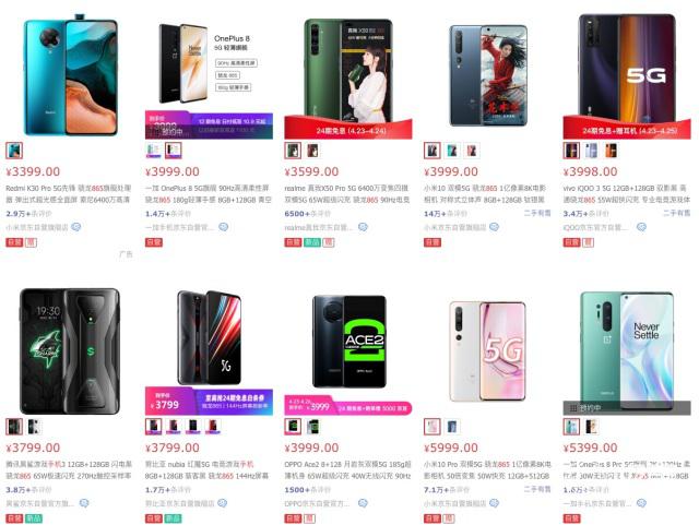 打开某知名电商网站,3000元价位可选择的旗舰机其实并不多。865机型只有红米K30 Pro(2999起)、腾讯黑鲨游戏手机3(3499起)、iQOO 3 5G(3598起)、realme X50 Pro 5G(3599起)、红魔5G(3799起)、小米10/一加8/OPPO Ace2(3999起),以及iQOO Neo3 (2698起),共 9 款。如果再加上荣耀 30、华为 nova 7/Pro 这哥仨的话,一共 12 款。