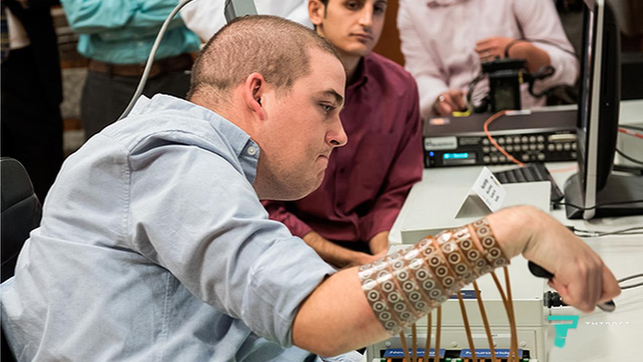 最终,他们利用BCI系统,实时记录伯克哈特大脑内活动情况,发送至计算机,然后利用算法对信息解密,把这一微弱神经信号放大,并将信息传递到他手臂上,激活伯克哈特的手部意识触觉。而在伯克哈特前臂位置,他们在装了一个脑机反馈电极套,利用电脉冲技术来触发伯克哈特的肌肉收缩,帮助他完成大脑中所想到的手部动作,比如直接举起咖啡杯、刷信用卡、打开房门把手等日常动作。