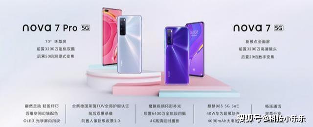 2020年4月23日,华为通过线上形式召开新品发布会,正式发布了nova系列全新5G手机——nova7系列。在这次发布会上,华为带来了三款nova产品,分别为:搭载麒麟985芯片的nova7/Pro和搭载麒麟820芯片的nova7 SE。其中,nova7官方售价2999元起;nova7 Pro官方售价3699元;nova7 SE官方售价2399元。均于今日预售,4月28日正式开售。