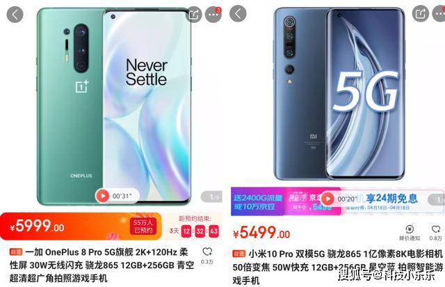 首先就是同为3999元起售的一加8和小米10两款机型,个人认为这两款机型还是很好选择的,完全就是两款性格极为不一致的机型,配置当然是小米10更高了,小米10是LPDDR 5的内存,一亿像素主摄,支持无线充电。而一加8就减配的比较严重了,LPDDR 4X的内存,主摄是去年的IMX586,没有无线充电,感觉一加8这个旗舰没有牌面。