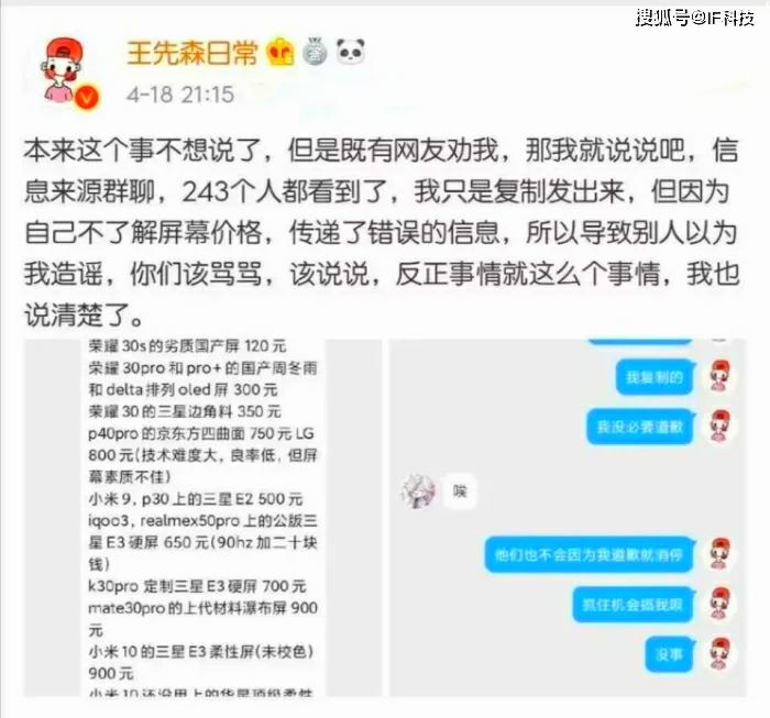 不过现在还是有一些网友因为华为旗舰机使用相较不好的屏幕而对其抨击,比如最近又有大量博主转发一个帖子,该帖子列出所有国产手机所使用的屏幕的成本,其中嘲讽荣耀高价手机使用千元低端机的屏幕,成本只有一百多元。千篇一律的转发,有网友发现可以在荣耀高管回应之前,可以搜索到万篇这样的帖子。